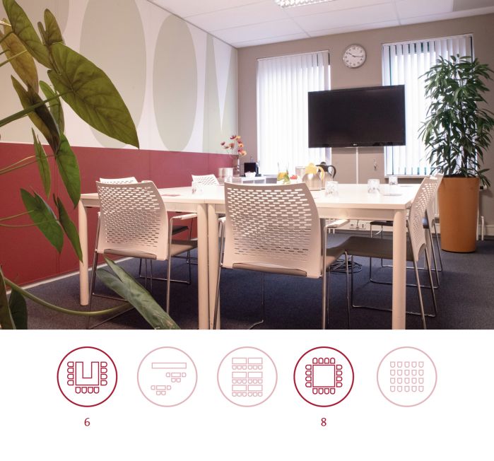 Tegen een kleine vergoeding maak je gebruik van onze vergaderfaciliteiten zoals een flatscreen-tv, beamer, flipovers en audiovisuele apparatuur voor online meetings.