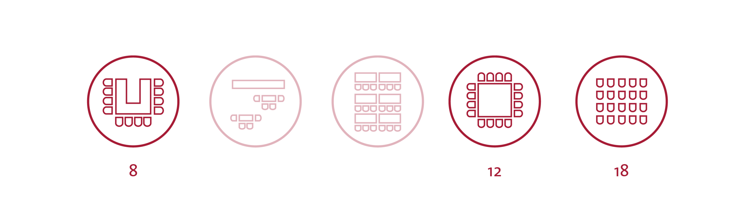 Vergaderzaal 8 is een ideale ruimte voor een kleine meeting of werkoverleg met 8 personen. Toch met een iets grotere groep? Door de flexibele geluidsdichte wand dient hij ook ter uitbreiding van vergaderzaal 7. Samen vormen deze ruimte 7+8.