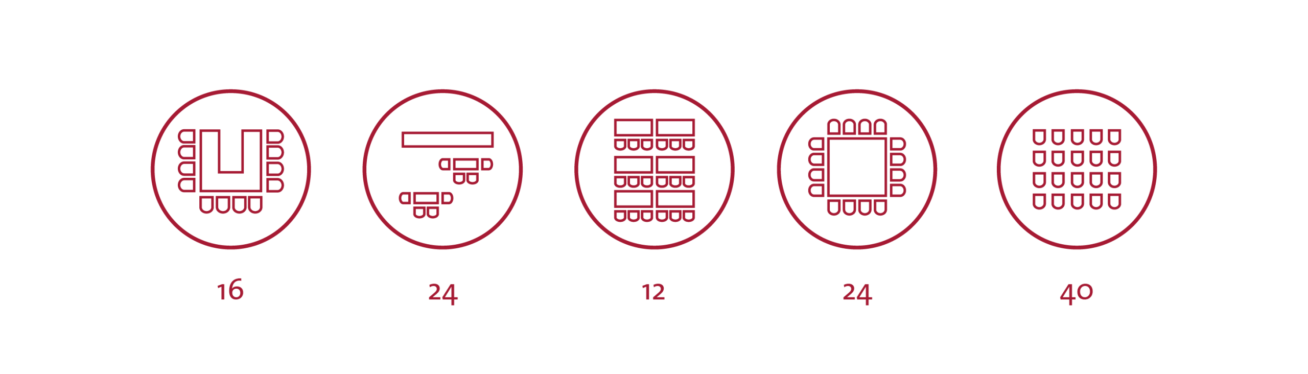 - Geschikt voor 16 tot 40 personen (in u-vorm max. 16)