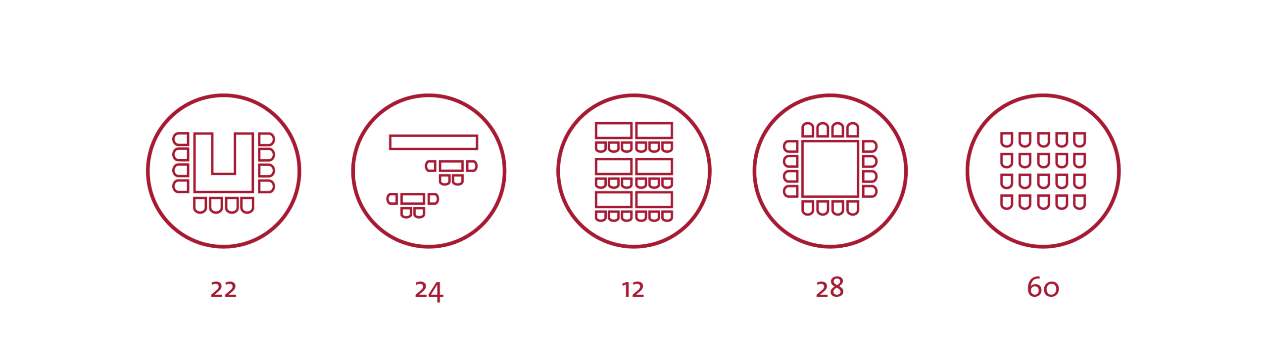 - Geschikt voor 22 tot 60 personen (in u-vorm max. 22)